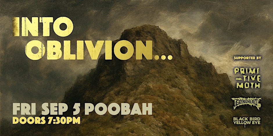 Grindhead Records & Primitive Moth present "Into Oblivion..."! The Hobart vinyl release show for Grim Ripper's raw, gritty slab of death metal, "Into The River Of Oblivion", at the Poobah on Friday the 5th of September.